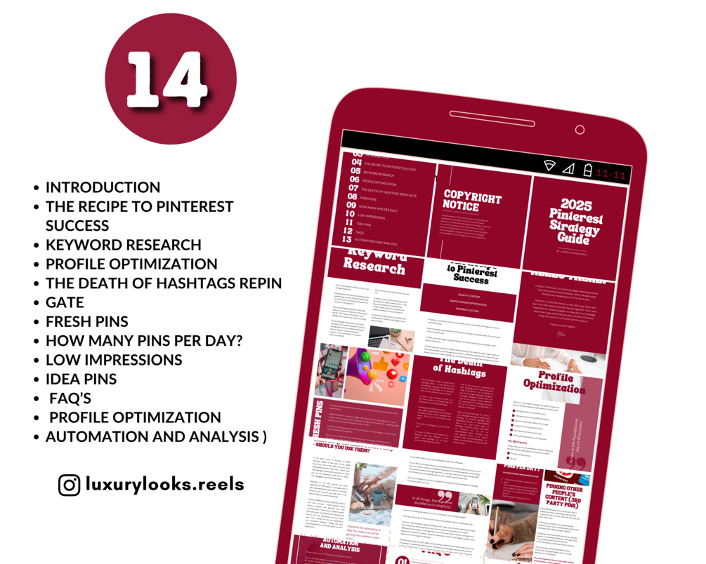 Unlock Pinterest’s full potential with the 2025 Pinterest Strategy Guide eBook. This guide offers proven strategies for increasing visibility, creating viral pins, and optimizing your profile. Learn the latest trends, master Pinterest SEO, and overcome common challenges to grow your online presence and drive sales.